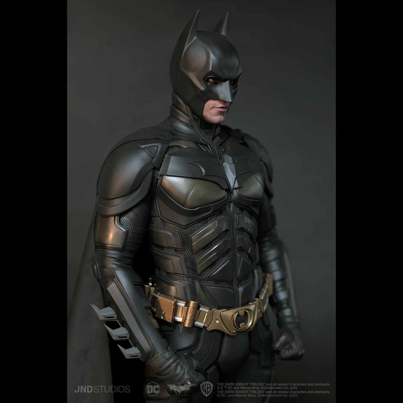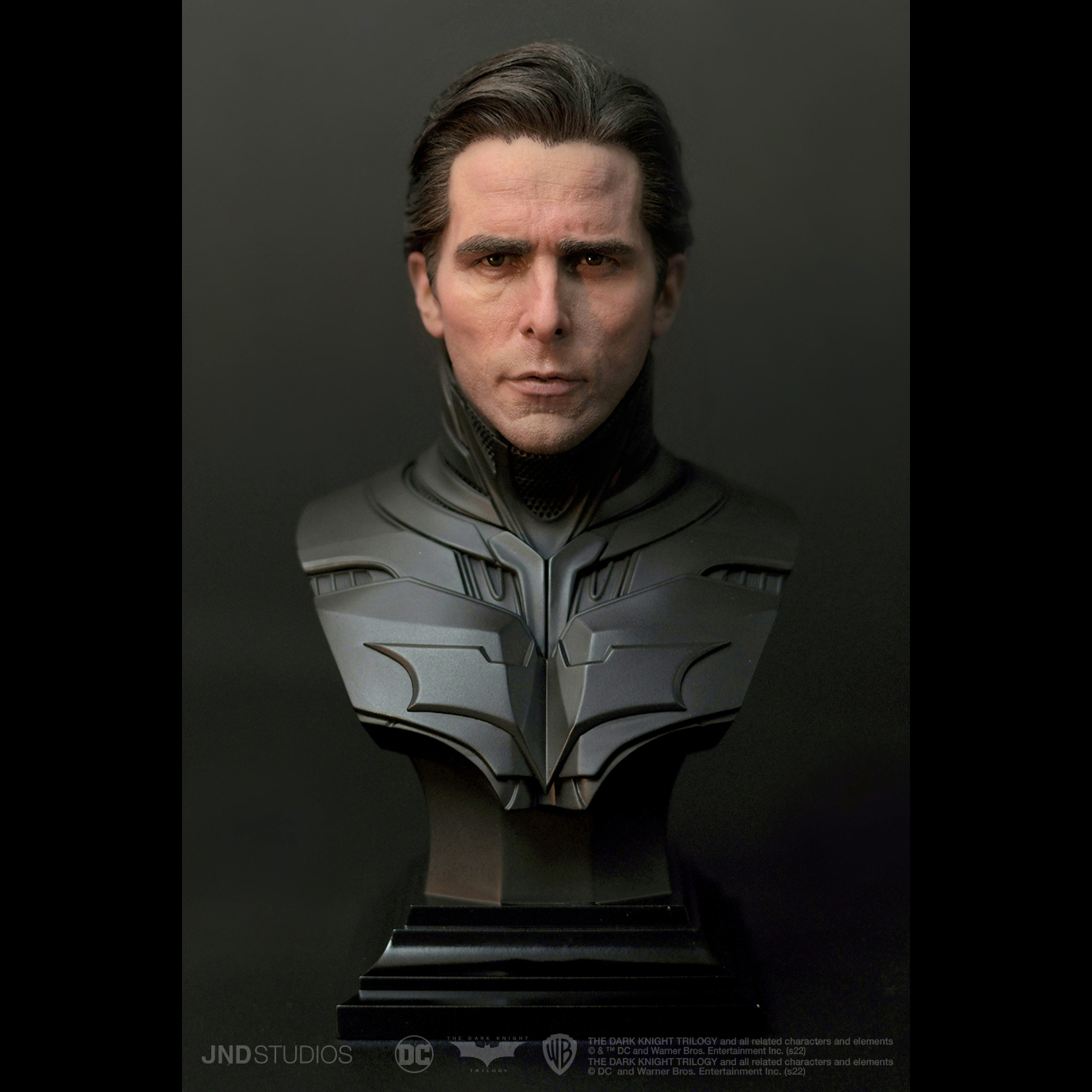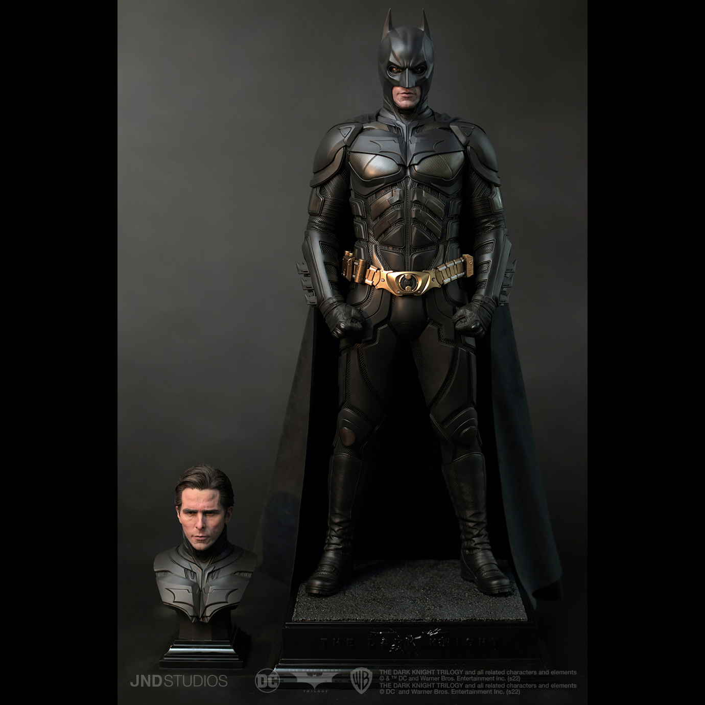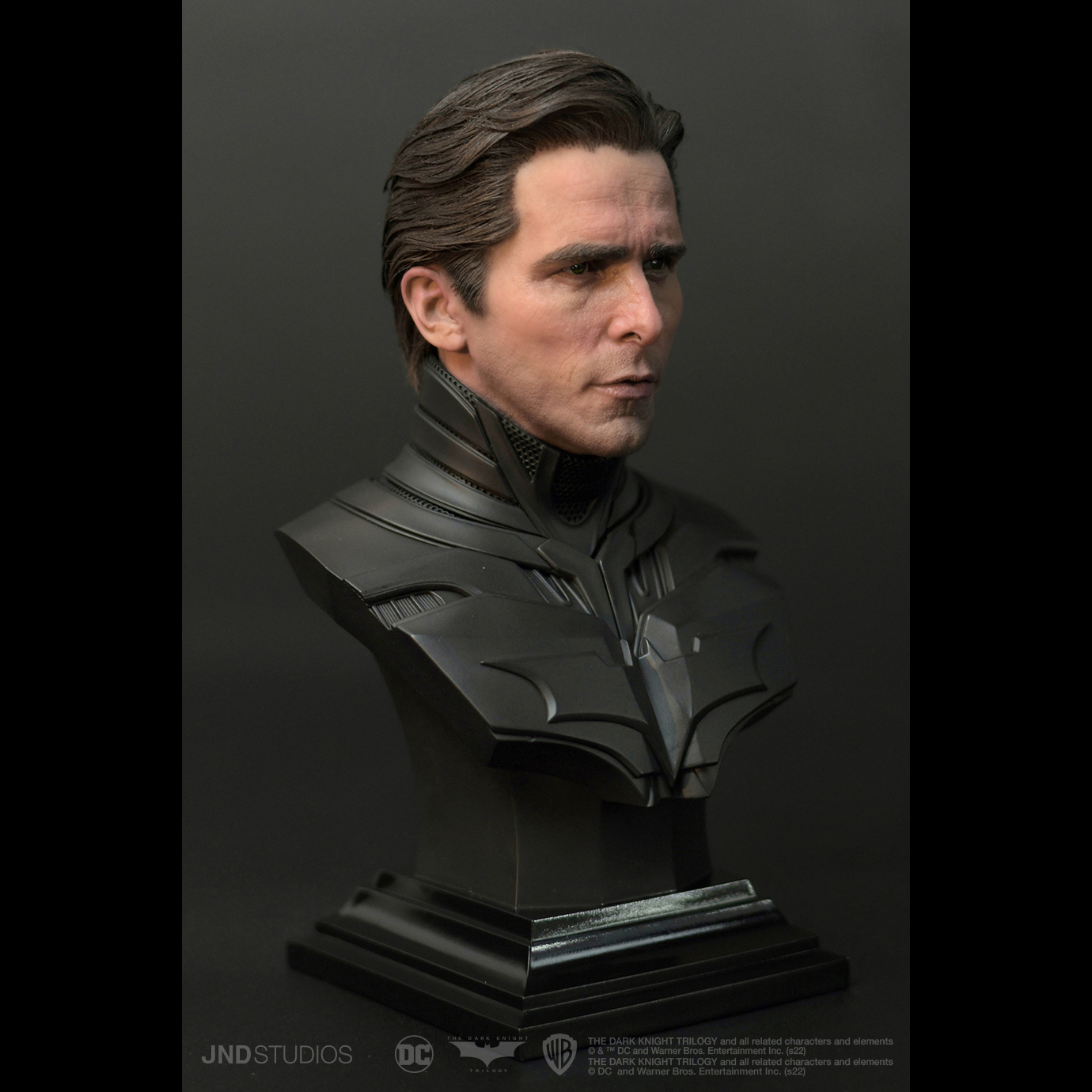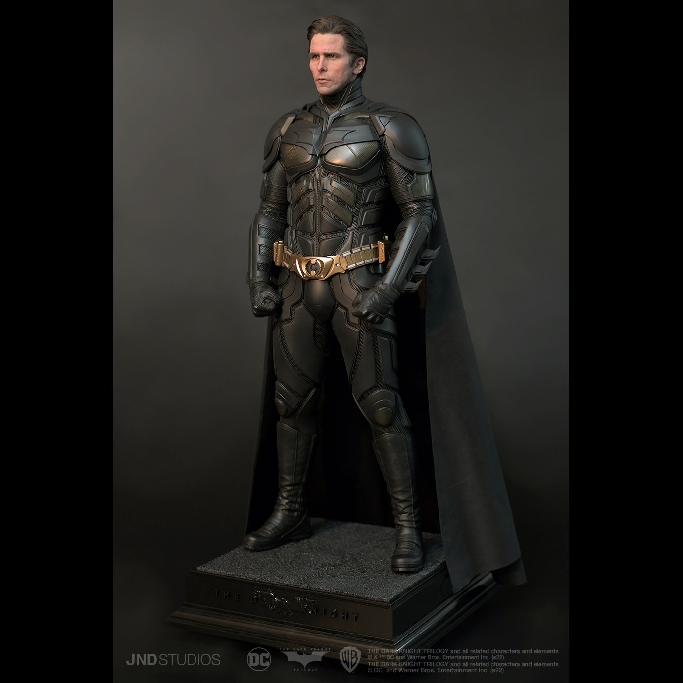 1:3 Batman of The Dark Knight by JND Studios is a piece that expresses both the meaning and the value that we are looking to convey. To begin the design of the project, we focused on Bruce Wayne’s internal conflict of identities - a theme that is prevalent throughout the entire trilogy. And to reflect this design in the most complete way possible, we created the Dual Version, displaying both Batman and Bruce Wayne on a single base.